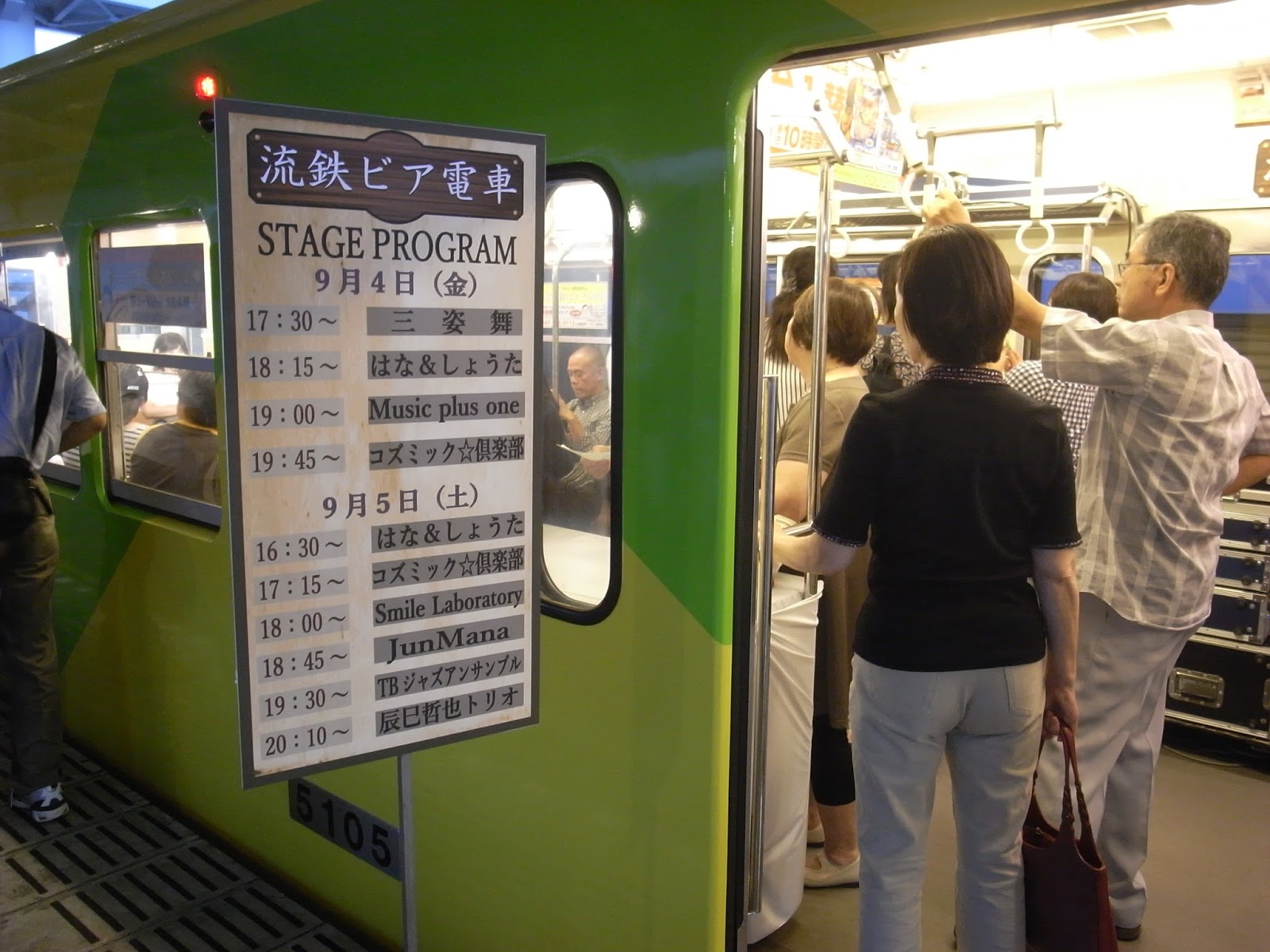 | ライブと料理が楽しめる「Beer電車」、参加費は飲食代のみ。 |